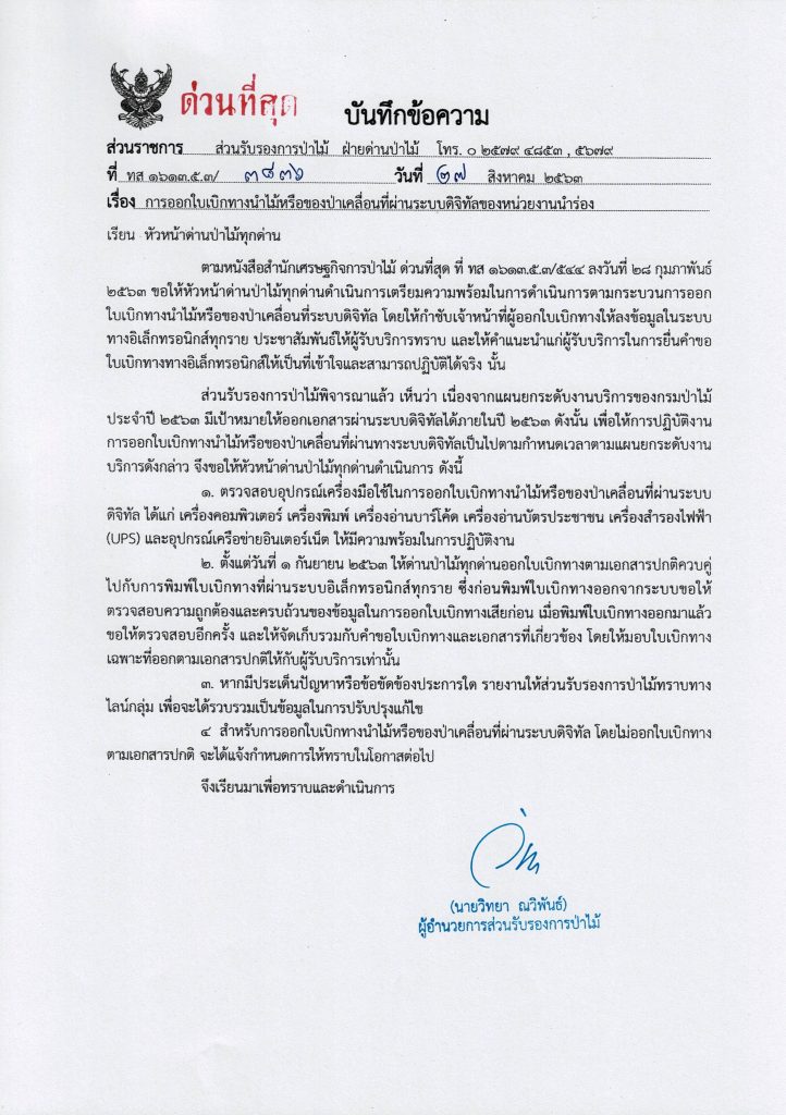 การออกใบเบิกทางนำไม้หรือของป่าเคลื่อนที่ผ่านระบบดิจิทัลของหน่วยงานนำร่อง เผยแพร่แล้ว 27 สิงหาคม 2020 การออกใบเบิกทางนำไม้หรือของป่าเคลื่อนที่ผ่านระบบดิจิทัลของหน่วยงานนำร่องดาวน์โหลด