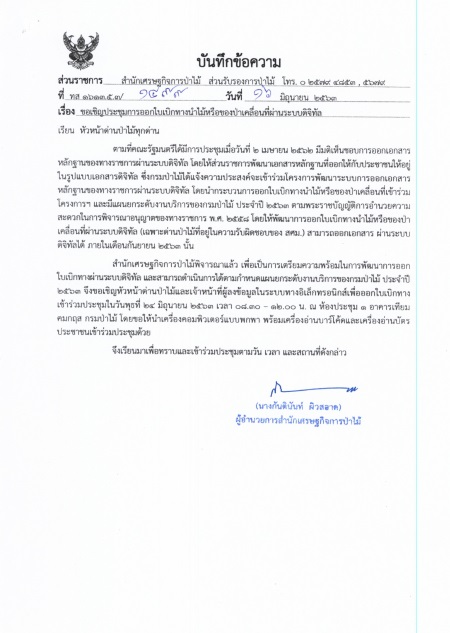 ขอเชิญประชุมการออกใบเบิกทางนำไม้หรือของป่าเคลื่อนที่ผ่านระบบดิจิทัล เผยแพร่แล้ว 17 มิถุนายน 2020 ขอเชิญประชุมการออกใบเบิกทางนำไม้หรือของป่าเคลื่อนที่ผ่านระบบดิจิทัลดาวน์โหลด