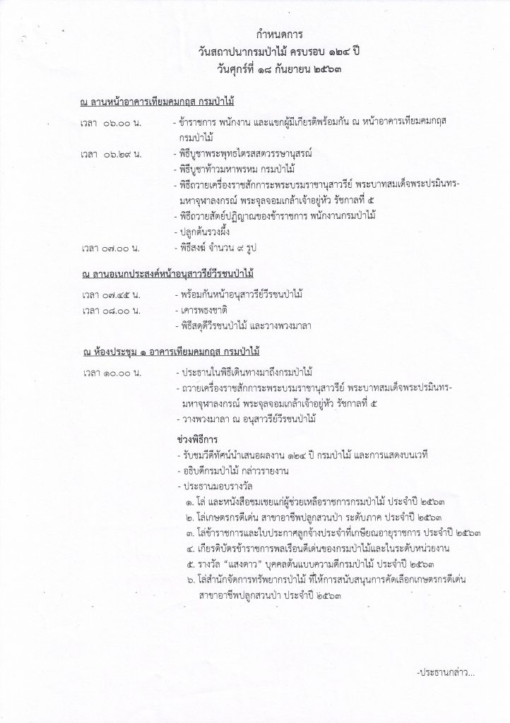 ขอเชิญร่วมงานวันสถาปนากรมป่าไม้ ครบรอบ 124 ปี เผยแพร่แล้ว 14 กันยายน 2020 ขอเชิญร่วมงานวันสถาปนากรมป่าไม้ ครบรอบ 124 ปีดาวน์โหลด