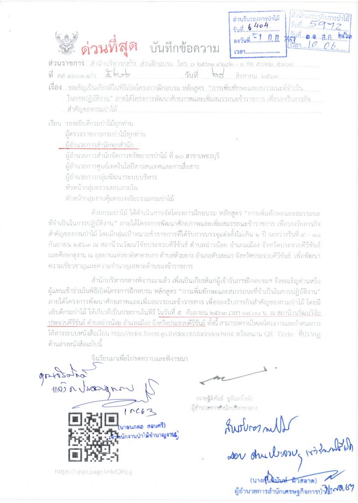 ขอเชิญเป็นเกียรติในพิธีเปิดโครงการฝึกอบรม หลักสูตร “การเพิ่มทักษะและสมรรถนะที่จำเป็นในการปฏิบัติงาน” ภายใต้โครงการพัฒนาศักยภาพและเพิ่มสมรรถนะข้าราชการ เพื่อรองรับภารกิจสำคัญของกรมป่าไม้ (เรียนหัวหน้าด่านป่าไม้ประจวบคีรีขันธ์) เผยแพร่แล้ว 3 กันยายน 2020 ขอเชิญเป็นเกียรติในพิธีเปิดโครงการฝึกอบรม หลักสูตร “การเพิ่มทักษะและสมรรถนะที่จำเป็นในการปฏิบัติงาน” ภายใต้โครงการพัฒนาศักยภาพและเพิ่มสมรรถนะข้าราชการ เพื่อรองรับภารกิจสำคัญของกรมป่าไม้ (เรียนหัวหน้าด่านป่าไม้ประจวบคีรีขันธ์)ดาวน์โหลด