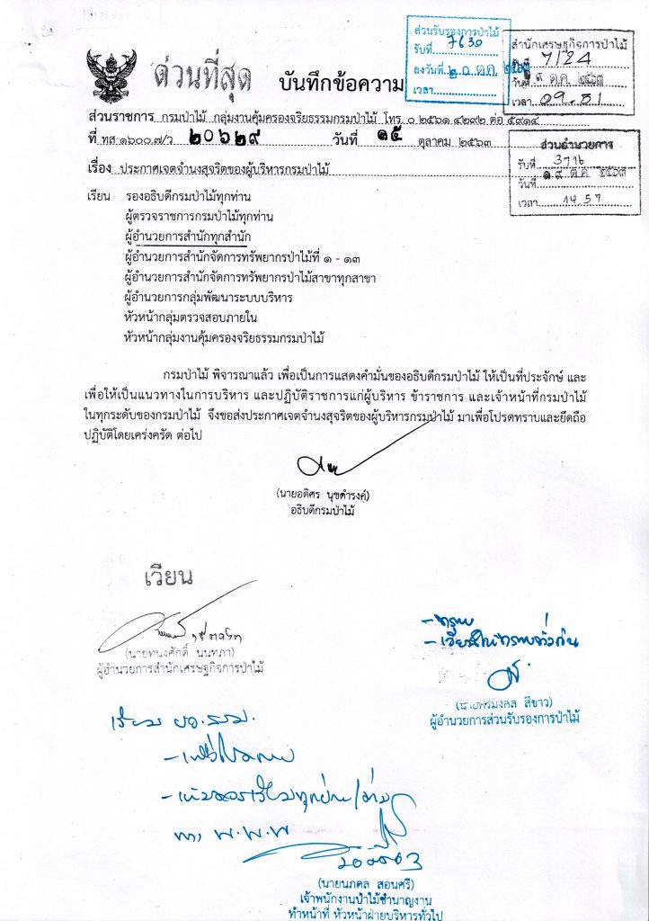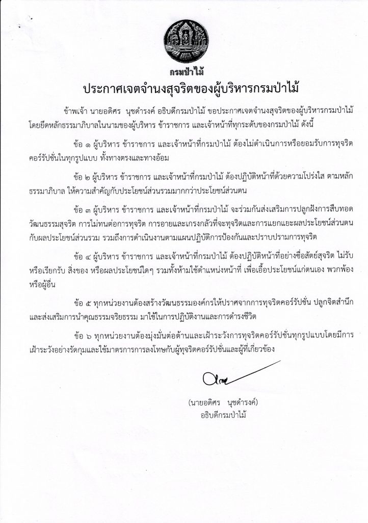 ประกาศเจตจำนงสุจริตของผู้บริหารกรมป่าไม้ เผยแพร่แล้ว 20 ตุลาคม 2020 ประกาศเจตจำนงสุจริตของผู้บริหารกรมป่าไม้ดาวน์โหลด