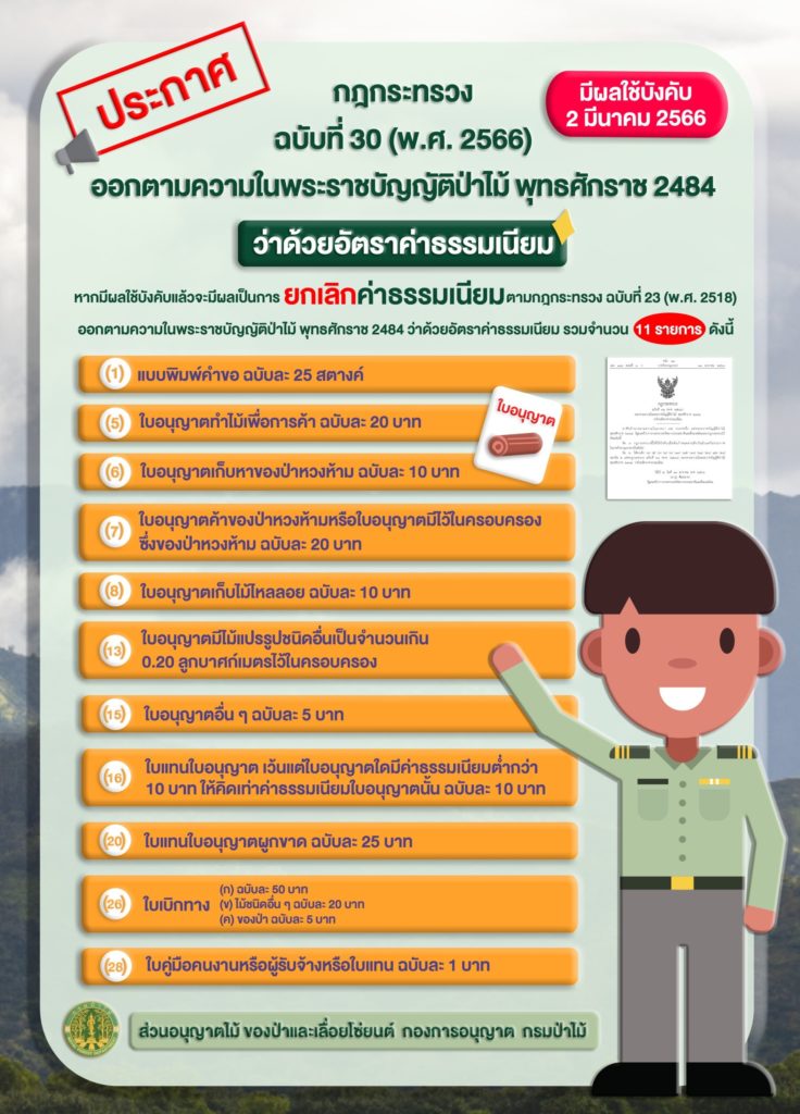 “ประกาศ” กฎกระทรวง ฉบับที่ 30 (พ.ศ. 2566) ออกตามความในพระราชบัญญัติป่าไม้ พุทศักราช 2484 ว่าด้วยอัตราค่าธรรมเนียม เผยแพร่แล้ว 28 กุมภาพันธ์ 2023 ประกาศ-กฎกระทรวง-ฉบับที่-30-พ.ศ.-2566ดาวน์โหลด