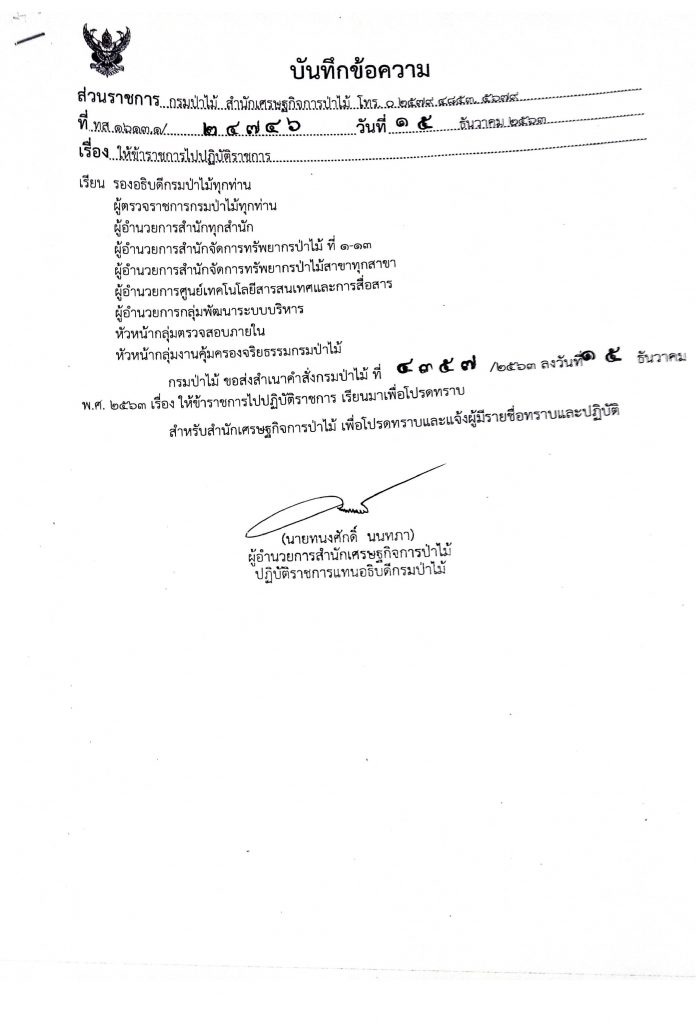 มอบอำนาจให้ผู้พิจารณาลงนาม (ตามระเบียบกรมป่าไม้ว่าด้วยการออกหนังสือรับรองไม้ พ.ศ. 2563)