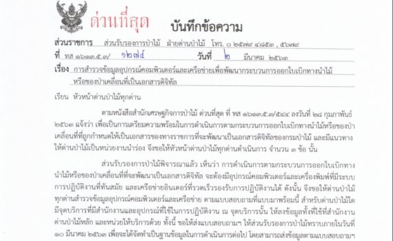 การสำรวจข้อมูลอุปกรณ์คอมพิวเตอร์และเครือข่ายเพื่อพัฒนากระบวนการออกใบเบิกทางนำไม้หรือของป่าเคลื่อนที่เป็นเอกสารดิจิทัล