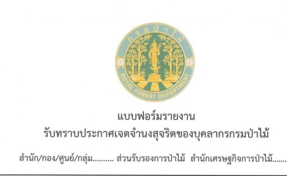 ประกาศเจตนารมณ์การรวมพลังขับเคลื่อนเป็นองค์กรคุณธรรมต้นแบบส่วนรับรองการป่าไม้ สำนักเศรษฐกิจการป่าไม้ กรมป่าไม้ ประจำปีงบประมาณ พ.ศ. …