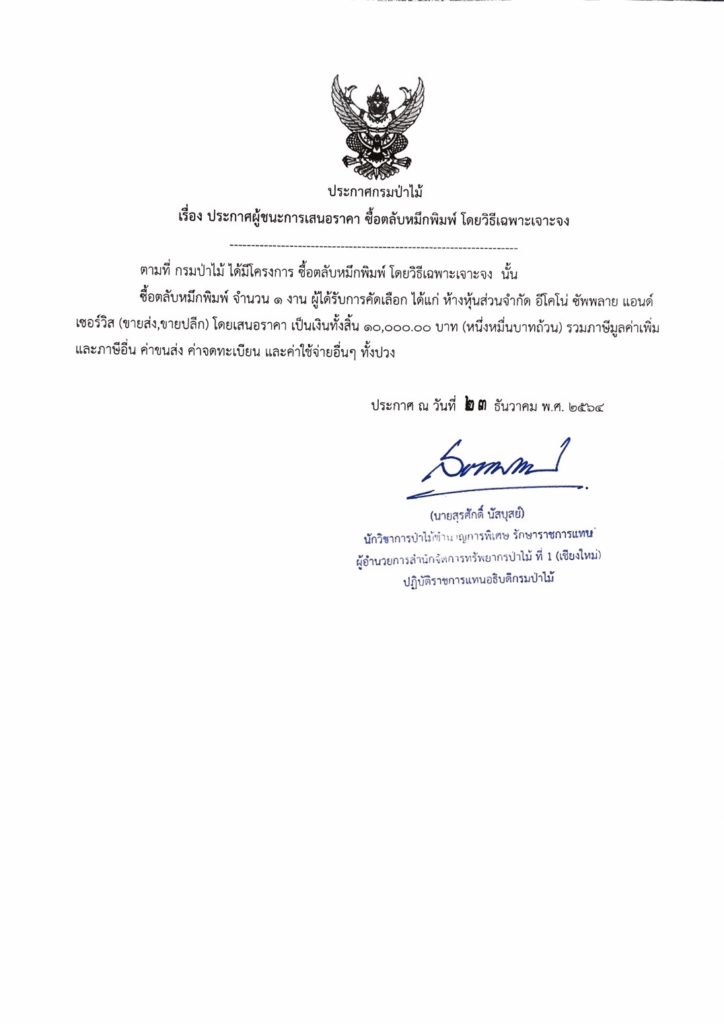 ประกาศกรมป่าไม้ เรื่อง ประกาศผู้ชนะการเสนอราคา ซื้อตลับหมึกพิมพ์ โดยวิธีเฉพาะเจาะจง23 ธันวาคม 2021 ใน ประกาศ by adminir