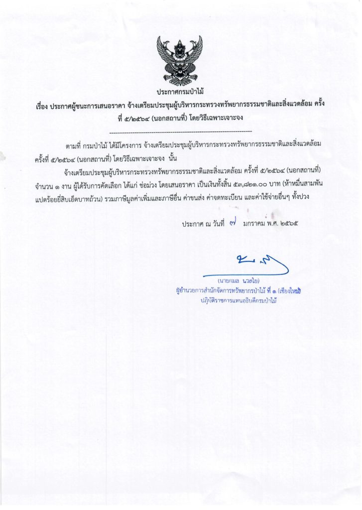 ประกาศกรมป่าไม้ เรื่อง ประกาศผู้ชนะการเสนอราคา จ้างเตรียมประชุมผู้บริหารกระทรวงทรัพยากรธรรมชาติและสิ่งแวดล้อม ครั้ง ที่ ๕/๒๕๖๔ (นอกสถานที่) โดยวิธีเฉพาะเจาะจง25 มกราคม 2022 ใน ประกาศ by adminir