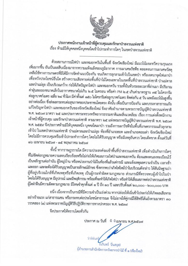 เรื่่อง ห้ามมิให้บุคคลหนึ่งบุคคลใดเข้าไปกระทำการใดๆ ในเขตป่าสงวนแห่งชาติ