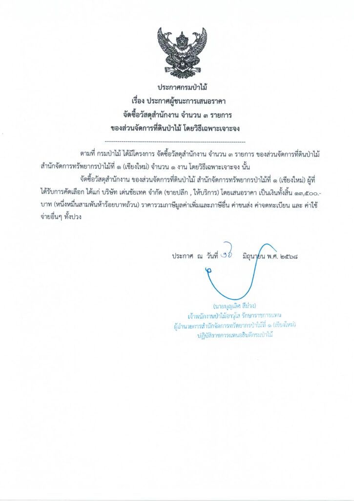ประกาศกรมป่าไม้ เรื่อง ประกาศผู้ชนะการเสนอราคา จัดซื้อวัสดุสำนักงาน จำนวน 3 รายการ ของส่วนจัดการที่ดินป่าไม้ โดยวิธีเฉพาะเจาะจง16 มิถุนายน 2025 ใน ประกาศผู้ชนะการเสนอราคา by adminir ประกาศกรมป่าไม้ เรื่อง ประกาศผู้ชนะการเสนอราคา จัดซื้อวัสดุสำนักงาน จำนวน 3 รายการ ของส่วนจัดการที่ดินป่าไม้ โดยวิธีเฉพาะเจาะจง