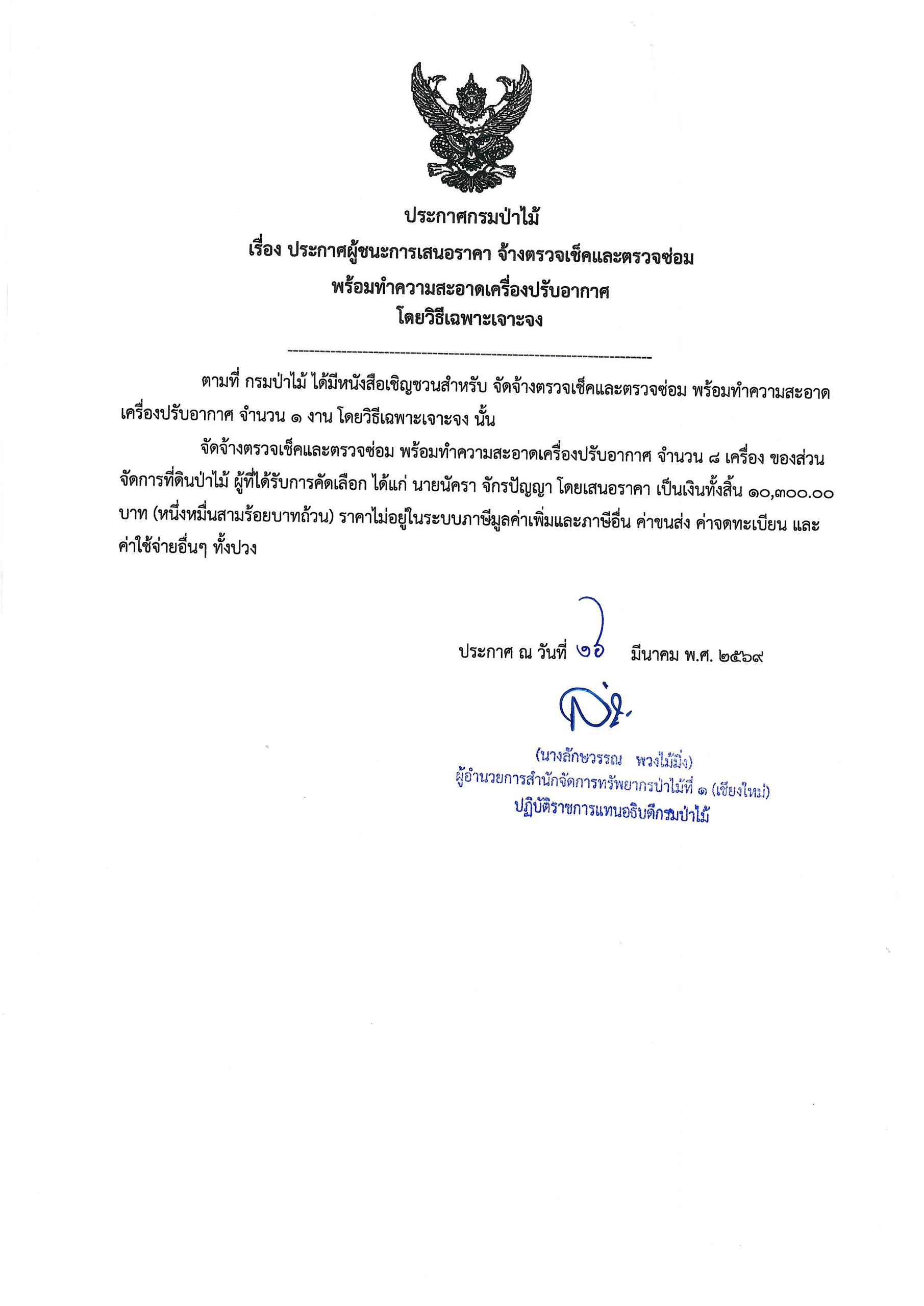 ประกาศกรมป่าไม้ เรื่อง ประกาศผู้ชนะการเสนอราคา จ้างตรวจเช็คและตรวจซ่อม พร้อมทำความสะอาดเครื่องปรับอากาศ โดยวิธีเฉพาะเจาะจง16 มีนาคม 2026 ใน ประกาศจัดซื้อจัดจ้าง / ประกาศผู้ชนะการเสนอราคา by adminir