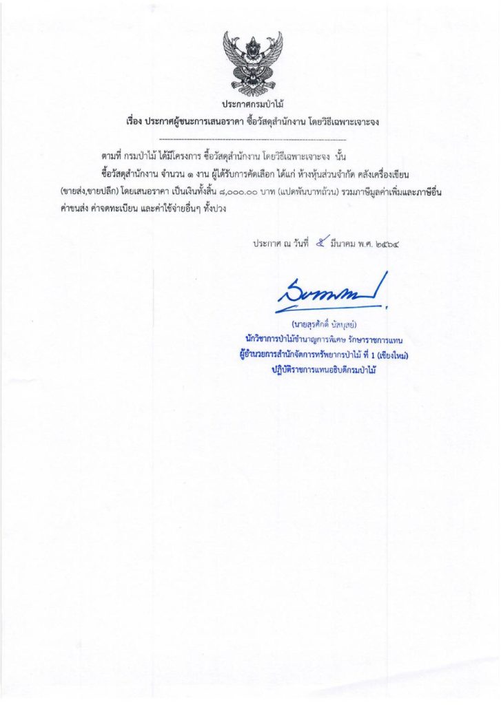ประกาศกรมป่าไม้ เรื่อง ประกาศผู้ชนะการเสนอราคา ซื้อวัสดุสำนักงาน โดยวิธีเฉพาะเจาะจง5 มีนาคม 2021 ใน ประกาศ by adminir