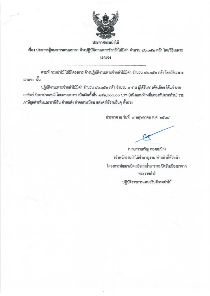 ประกาศกรมป่าไม้ เรื่อง ประกาศผู้ชนะการเสนอราคา จ้างปฏิบัติงานเพาะชำกล้าไม้มีค่า จำนวน 46,052 กล้า โดยวิธีเฉพาะเจาะจง7 พฤษภาคม 2021 ใน ประกาศ by adminir
