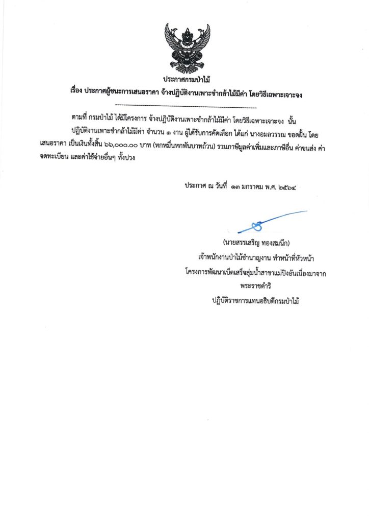 ประกาศกรมป่าไม้ เรื่อง ประกาศผู้ชนะการเสนอราคา จ้างปฏิบัติงานเพาะชำกล้าไม้มีค่า โดยวิธีเฉพาะเจาะจง27 กรกฎาคม 2021 ใน ประกาศ by adminir