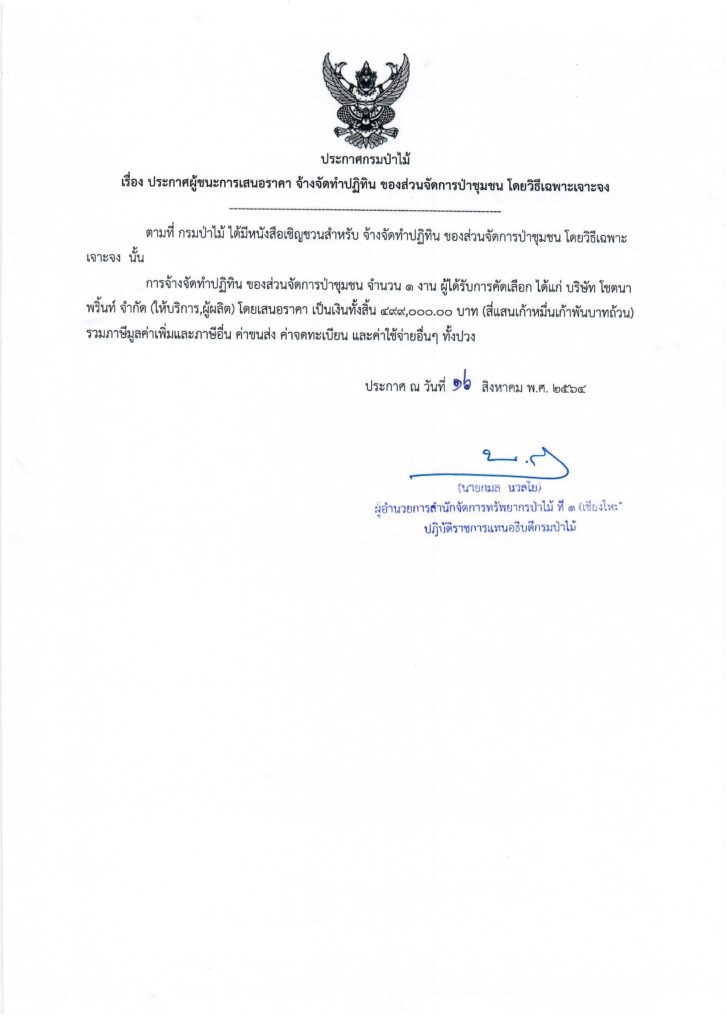 ประกาศกรมป่าไม้ เรื่อง ประกาศผู้ชนะการเสนอราคา จ้างจัดทำปฏิทิน ของส่วนจัดการป่าชุมชน โดยวิธีเฉพาะเจาะจง16 สิงหาคม 2021 ใน ประกาศ by adminir