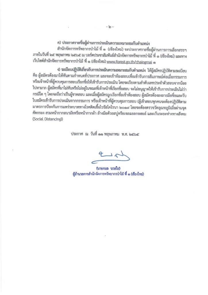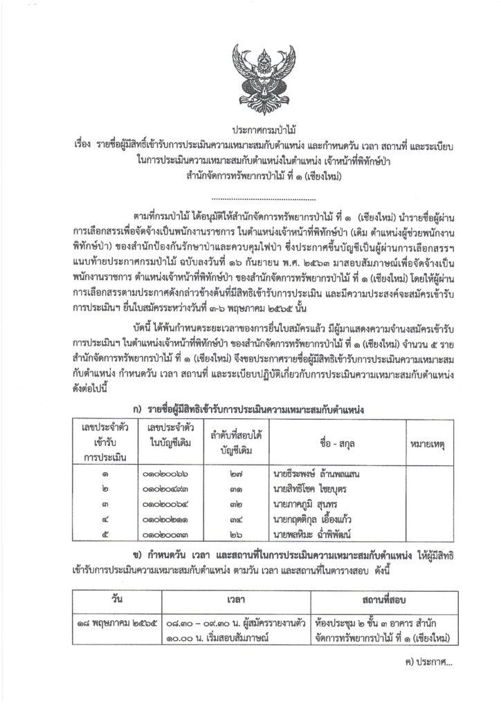 หน้าแรก » ประกาศ » ประกาศกรมป่าไม้ เรื่อง รายชื่อผู้มีสิทธิ์เข้ารับการประเมินความเหมาะสมกับตำแหน่ง และกำหนดวัน เวลา สถานที่ และระเบียบ ในการประเมินความเหมาะสมกับตำแหน่งในตำแหน่ง เจ้าหน้าที่พิทักษ์ป่า สำนักจัดการทรัพยากรป่าไม้ ที่ ๑ (เชียงใหม่)