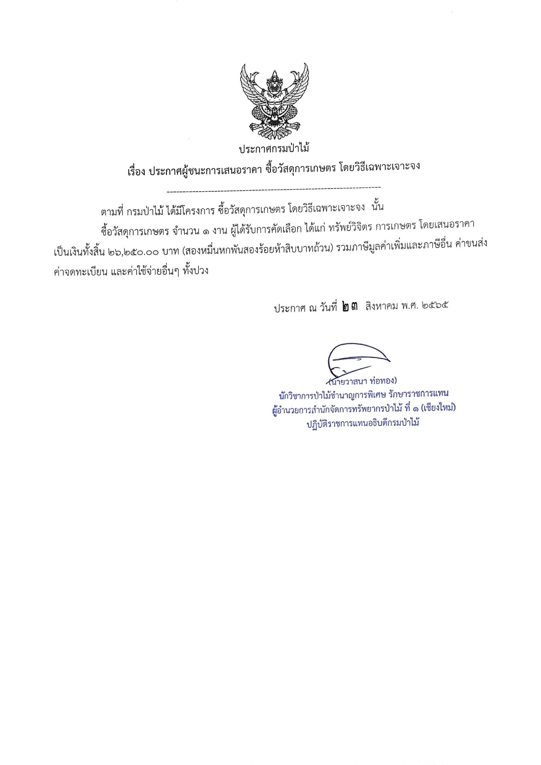 ประกาศกรมป่าไม้ เรื่อง ประกาศผู้ชนะการเสนอราคา ซื้อวัสดุการเกษตร โดยวิธีเฉพาะเจาะจง25 สิงหาคม 2022 ใน ประกาศจัดซื้อจัดจ้าง by adminir