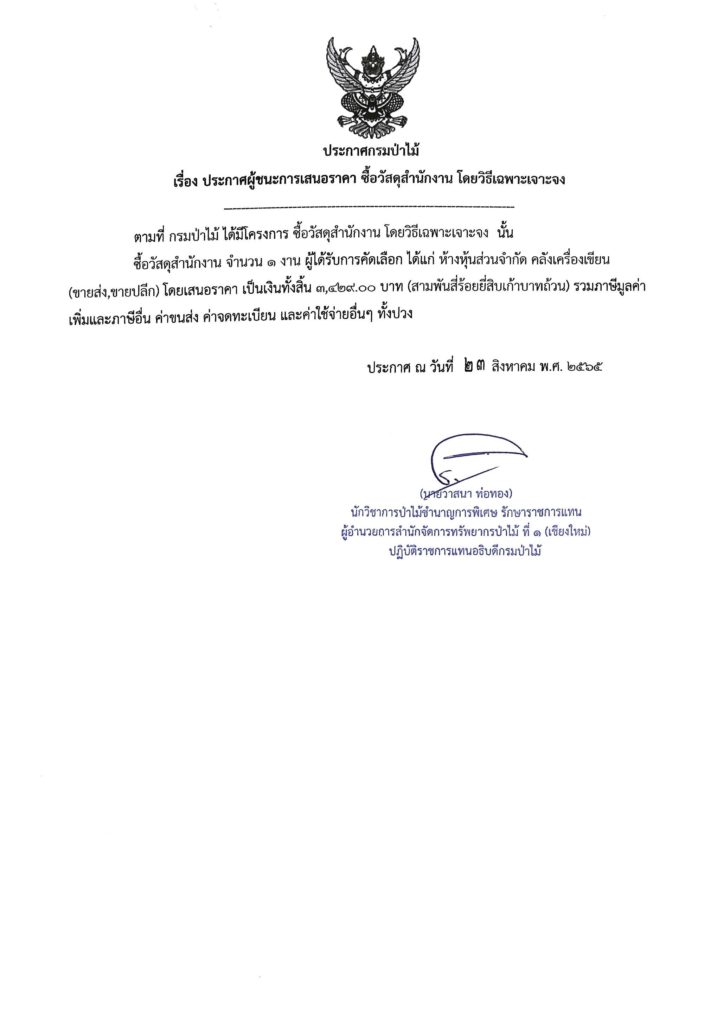 ประกาศกรมป่าไม้ เรื่อง ประกาศผู้ชนะการเสนอราคา ซื้อวัสดุสำนักงาน โดยวิธีเฉพาะเจาะจง25 สิงหาคม 2022 ใน ประกาศจัดซื้อจัดจ้าง by adminir