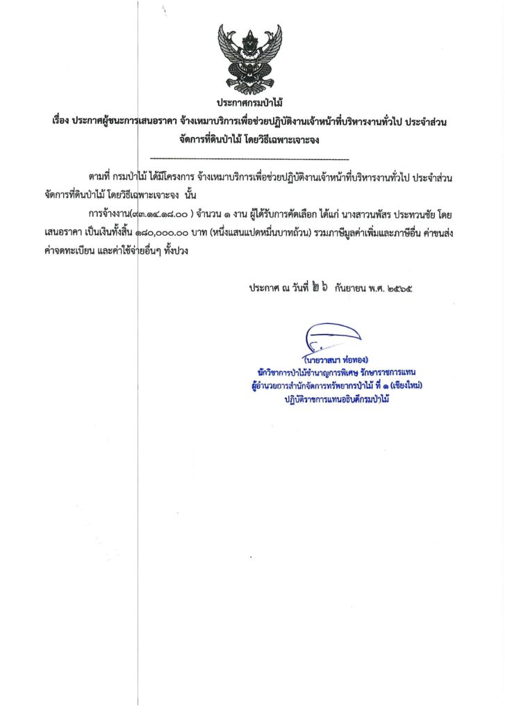 ประกาศกรมป่าไม้ เรื่อง ประกาศผู้ชนะการเสนอราคา จ้างเหมาบริการเพื่อช่วยปฏิบัติงานเจ้าหน้าที่บริหารงานทั่วไป ประจำส่วนจัดการที่ดินป่าไม้ โดยวิธีเฉพาะเจาะจง27 กันยายน 2022 ใน ประกาศจัดซื้อจัดจ้าง by adminir