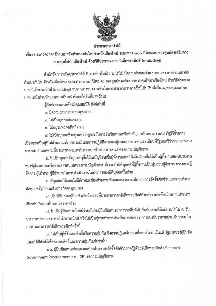 ประกาศกรมป่าไม้ เรื่อง ประกวดราคาจ้างเหมาจัดทำแนวกันไฟ จังหวัดเชียงใหม่ ระยะทาง ๓๐๐ กิโลเมตร ของศูนย์ส่งเสริมการควบคุมไฟป่าเชียงใหม่ ด้วยวิธีประกวดราคาอิเล็กทรอนิกส์ (e-bidding)13 มกราคม 2023 ใน ประกาศจัดซื้อจัดจ้าง by adminir
