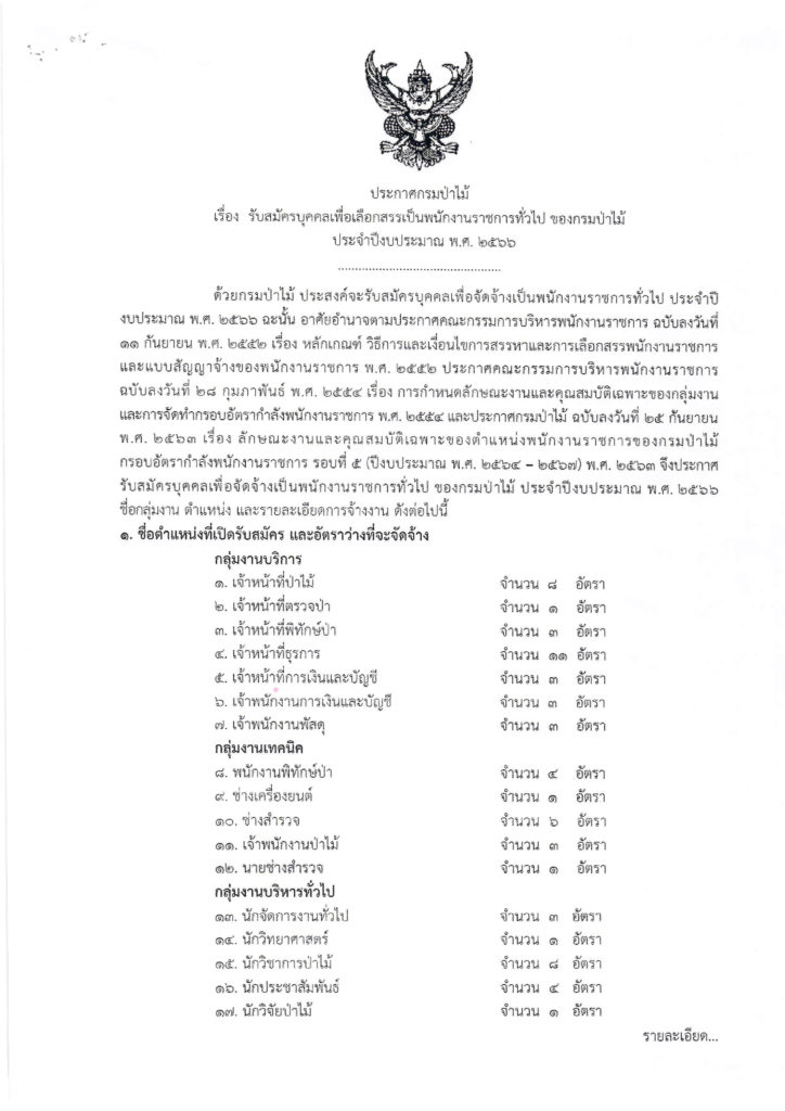ประกาศกรมป่าไม้ เรื่อง รับสมัครบุคคลเพื่อเลือกสรรเป็นพนักงานราชการทั่วไป ของกรมป่าไม้ประจำปีงบประมาณ พ.ศ. ๒๕๖๖3 กุมภาพันธ์ 2023 ใน ประกาศ by adminir