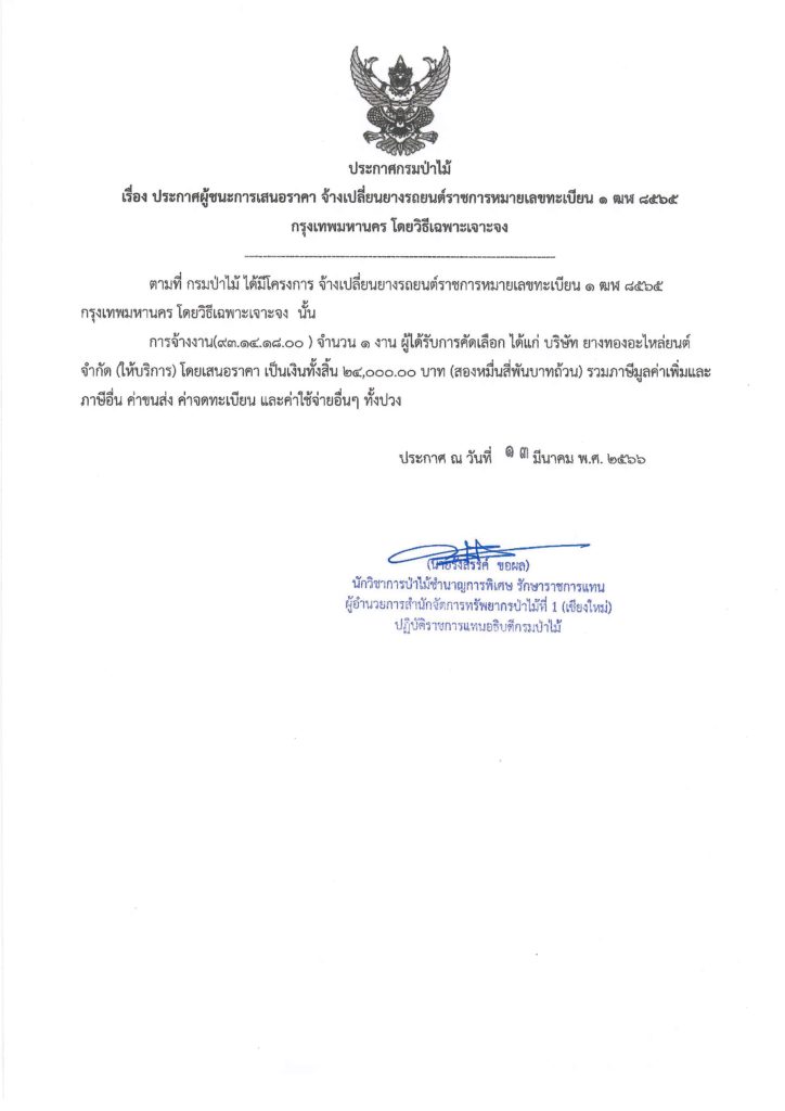 ประกาศกรมป่าไม้ เรื่อง ประกาศผู้ชนะการเสนอราคา จ้างเปลี่ยนยางรถยนต์ราชการหมายเลขทะเบียน ๑ ฒฬ ๘๕๖๕ กรุงเทพมหานคร โดยวิธีเฉพาะเจาะจง13 มีนาคม 2023 ใน ประกาศจัดซื้อจัดจ้าง by adminir