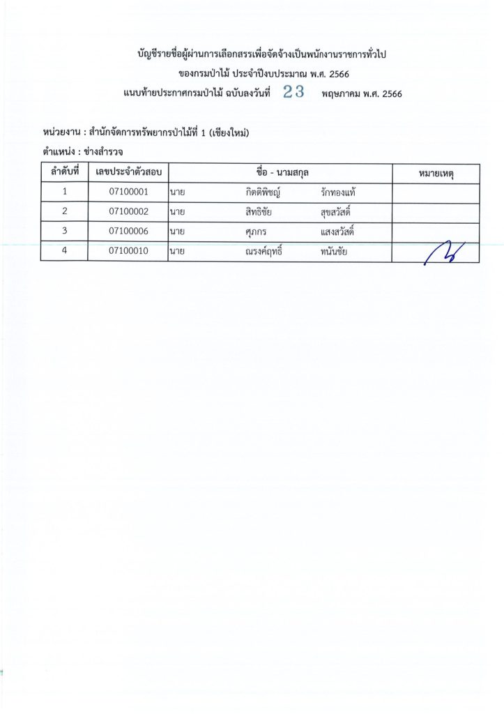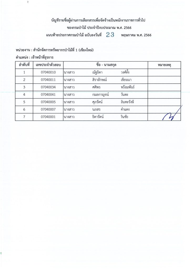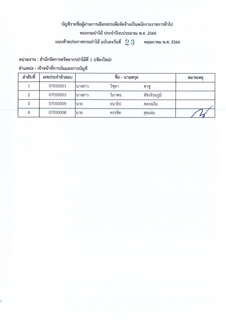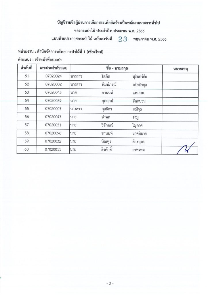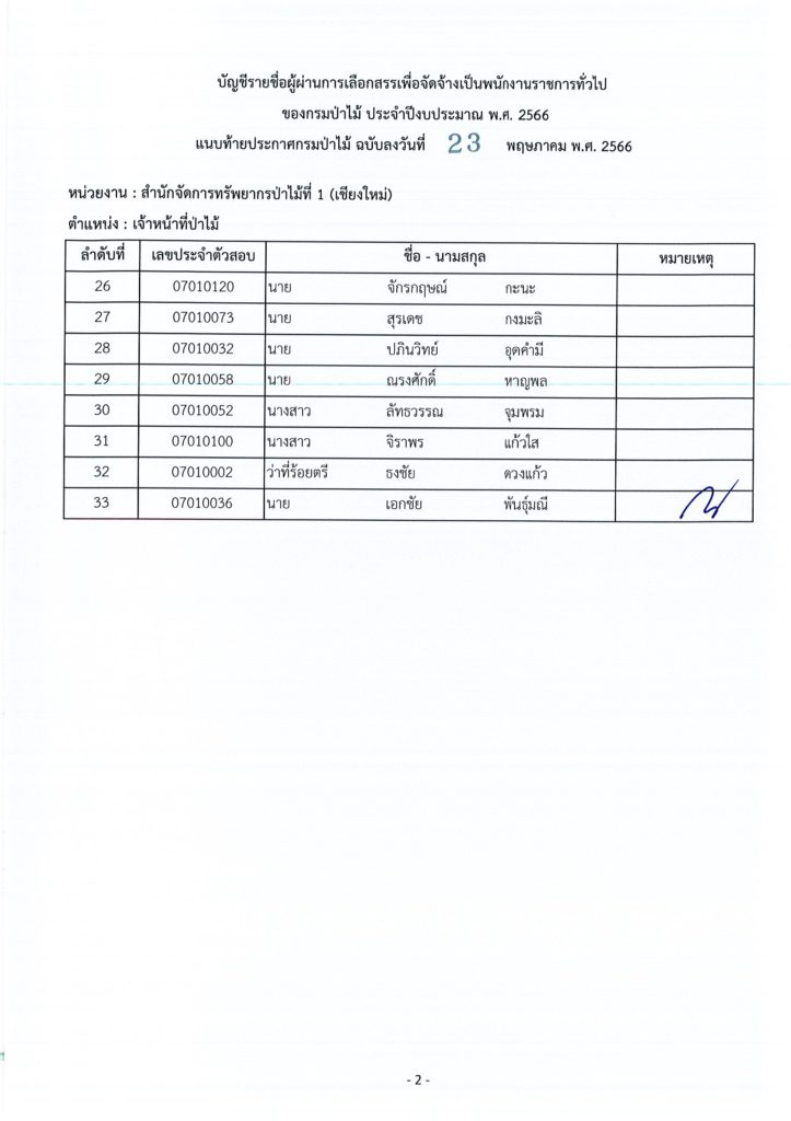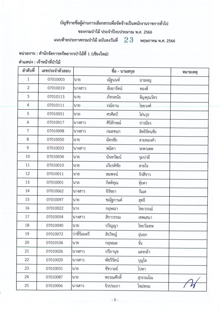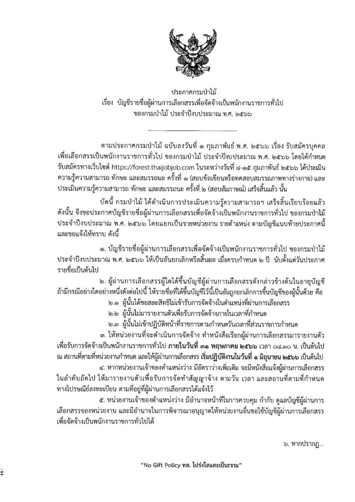 ประกาศกรมป่าไม้ เรื่อง บัญชีรายชื่อผู้ผ่านการเลือกสรรเพื่อจัดจ้างเป็นพนักงานราชการทั่วไป ของกรมป่าไม้ ประจำปีงบประมาณ พ.ศ. ๒๕๖๖