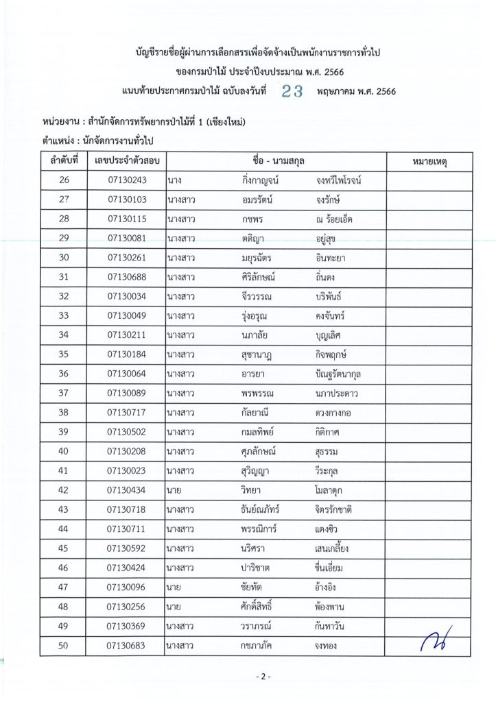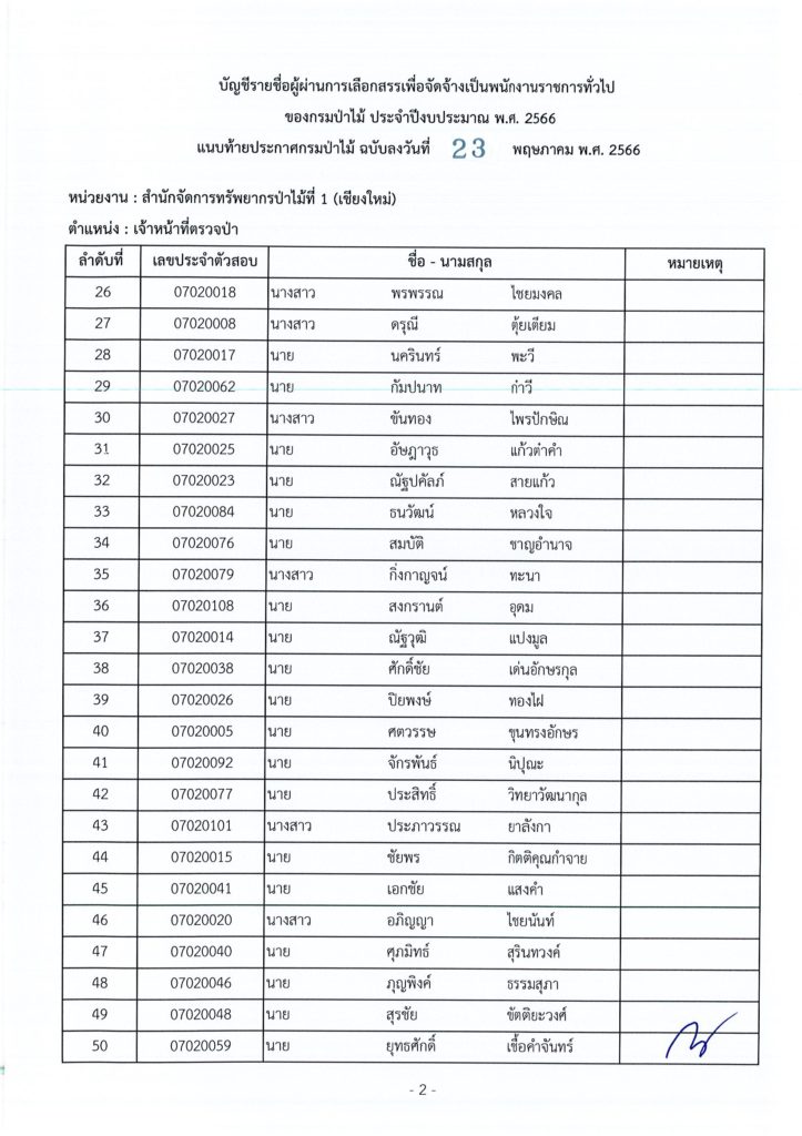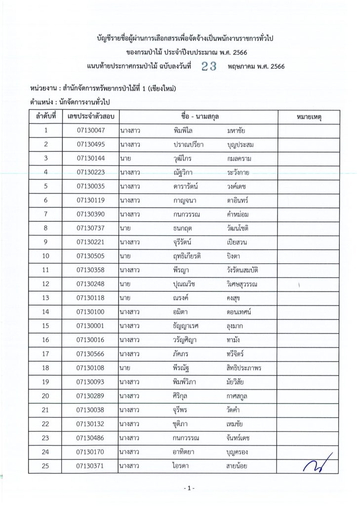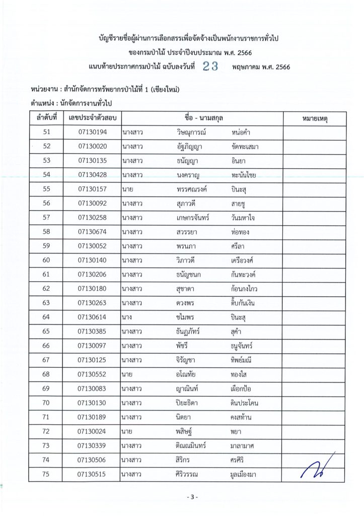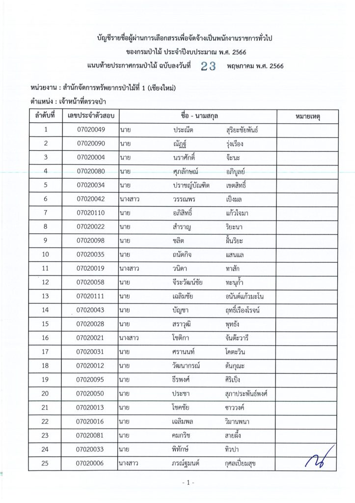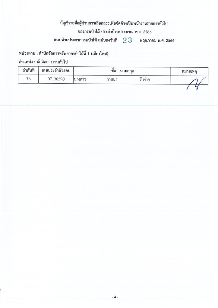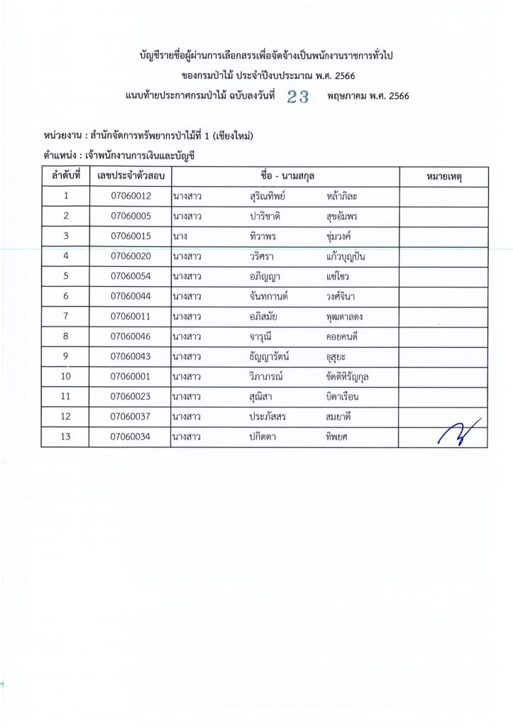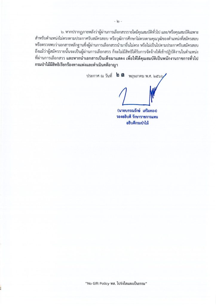 ประกาศกรมป่าไม้ เรื่อง บัญชีรายชื่อผู้ผ่านการเลือกสรรเพื่อจัดจ้างเป็นพนักงานราชการทั่วไป ของกรมป่าไม้ ประจำปีงบประมาณ พ.ศ. ๒๕๖๖