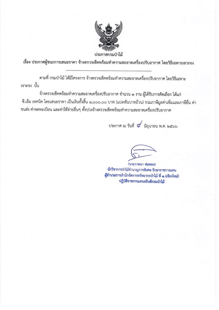 ประกาศกรมป่าไม้ เรื่อง ประกาศผู้ชนะการเสนอราคา จ้างตรวจเช็คพร้อมทำความสะอาดเครื่องปรับอากาศ โดยวิธีเฉพาะเจาะจง9 มิถุนายน 2023 ใน ประกาศจัดซื้อจัดจ้าง by adminir