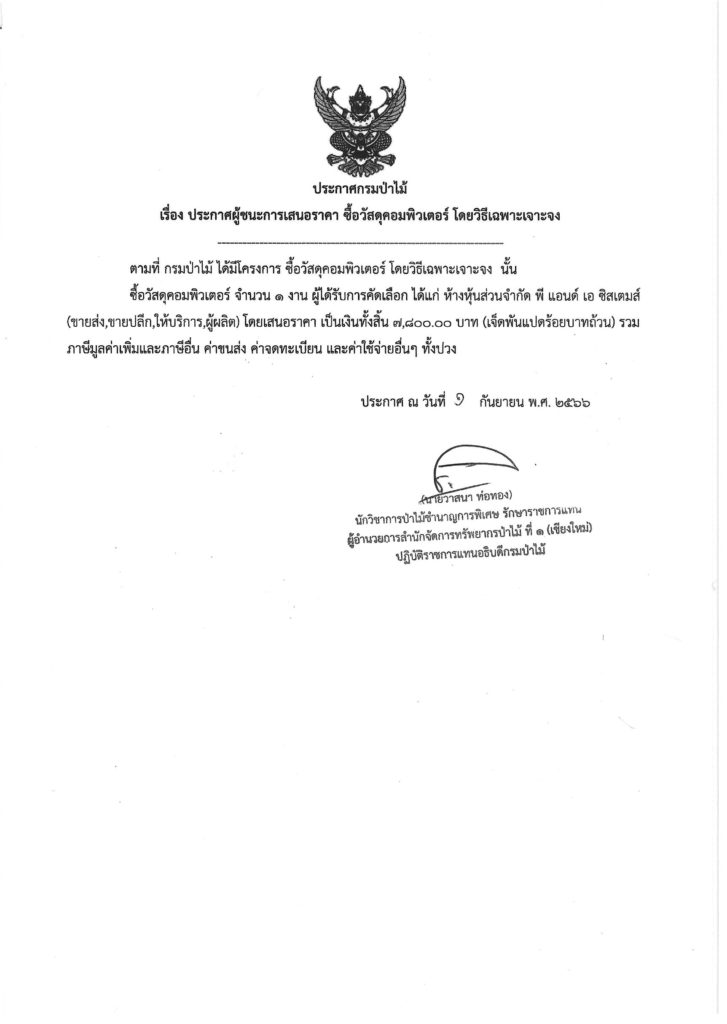 ประกาศกรมป่าไม้ เรื่อง ประกาศผู้ชนะการเสนอราคา ซื้อวัสดุคอมพิวเตอร์ โดยวิธีเฉพาะเจาะจง1 กันยายน 2023 ใน ประกาศจัดซื้อจัดจ้าง by adminir