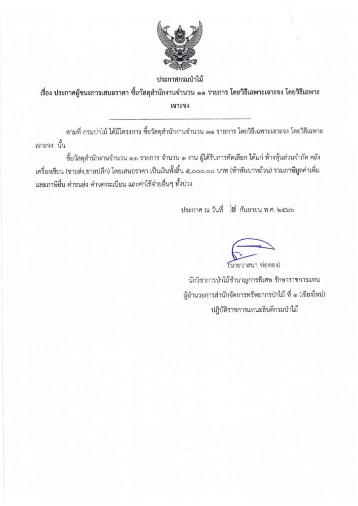 ประกาศกรมป่าไม้ เรื่อง ประกาศผู้ชนะการเสนอราคา ซื้อวัสดุสำนักงานจำนวน ๑๑ รายการ โดยวิธีเฉพาะเจาะจง โดยวิธีเฉพาะเจาะจง8 กันยายน 2023 ใน ประกาศจัดซื้อจัดจ้าง by adminir