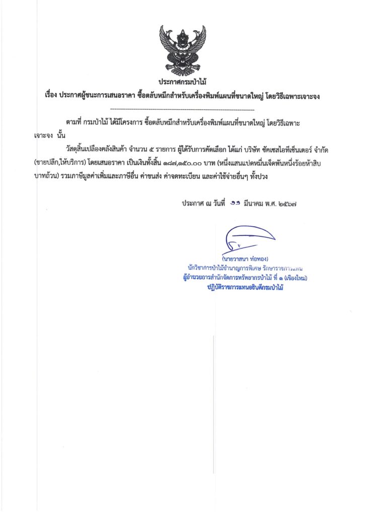 ประกาศกรมป่าไม้ เรื่อง ประกาศผู้ชนะการเสนอราคา ซื้อตลับหมึกสำหรับเครื่องพิมพ์แผนที่ขนาดใหญ่ โดย วิธีเฉพาะเจาะจง11 มีนาคม 2024 ใน ประกาศจัดซื้อจัดจ้าง by adminir