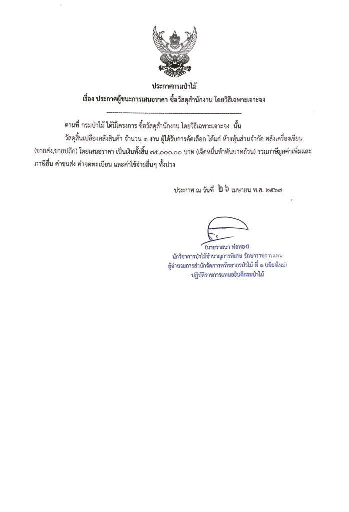 ประกาศกรมป่าไม้ เรื่อง ประกาศผู้ชนะการเสนอราคา ซื้อวัสดุสำนักงาน โดยวิธีเฉพาะเจาะจง26 เมษายน 2024 ใน ประกาศจัดซื้อจัดจ้าง by adminir