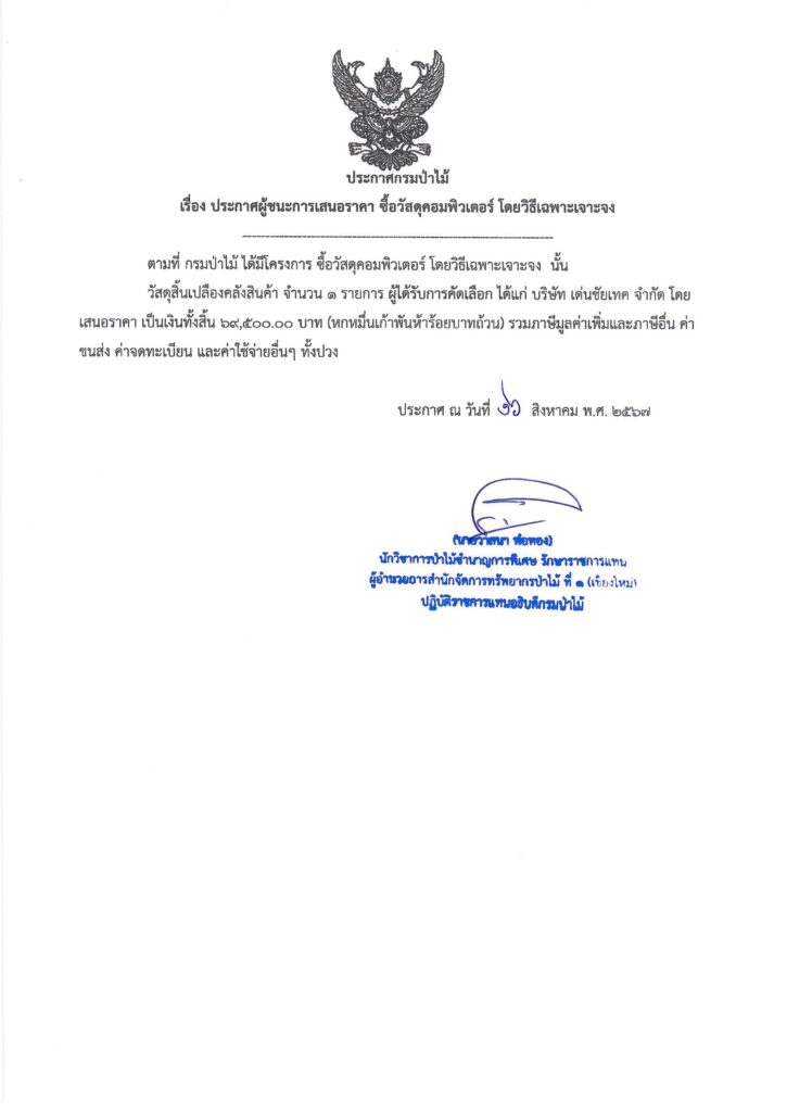 ประกาศกรมป่าไม้ เรื่อง ประกาศผู้ชนะการเสนอราคา ซื้อวัสดุคอมพิวเตอร์ โดยวิธีเลพาะเจาะจง16 สิงหาคม 2024 ใน ประกาศผู้ชนะการเสนอราคา by adminir