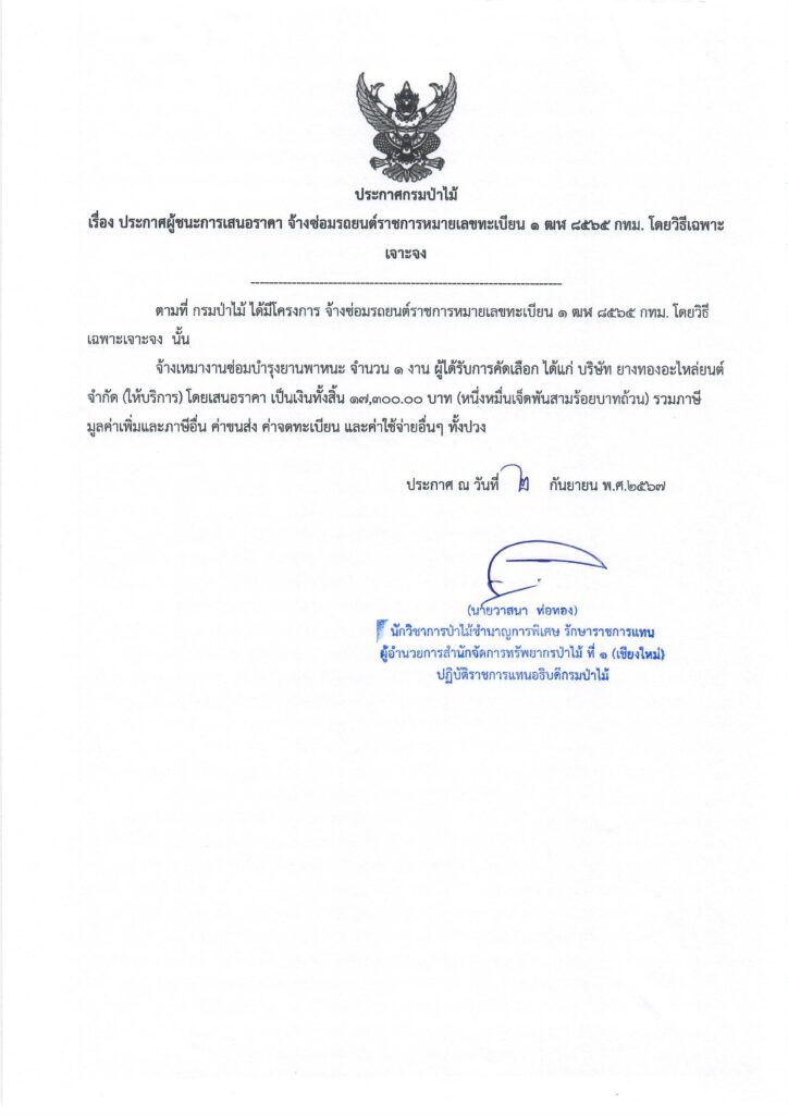 ประกาศกรมป่าไม้ เรื่อง ประกาศผู้ชนะการเสนอราคา จ้างซ่อมรถยนต์ราชการหมายเลขทะเบียน 1 ฒฬ 8565 กทม. โดยวิธีเฉพาะเจาะจง2 กันยายน 2024 ใน ประกาศผู้ชนะการเสนอราคา by adminir ประกาศกรมป่าไม้ เรื่อง ประกาศผู้ชนะการเสนอราคา จ้างซ่อมรถยนต์ราชการหมายเลขทะเบียน 1 ฒฬ 8565 กทม. โดยวิธีเฉพาะเจาะจง