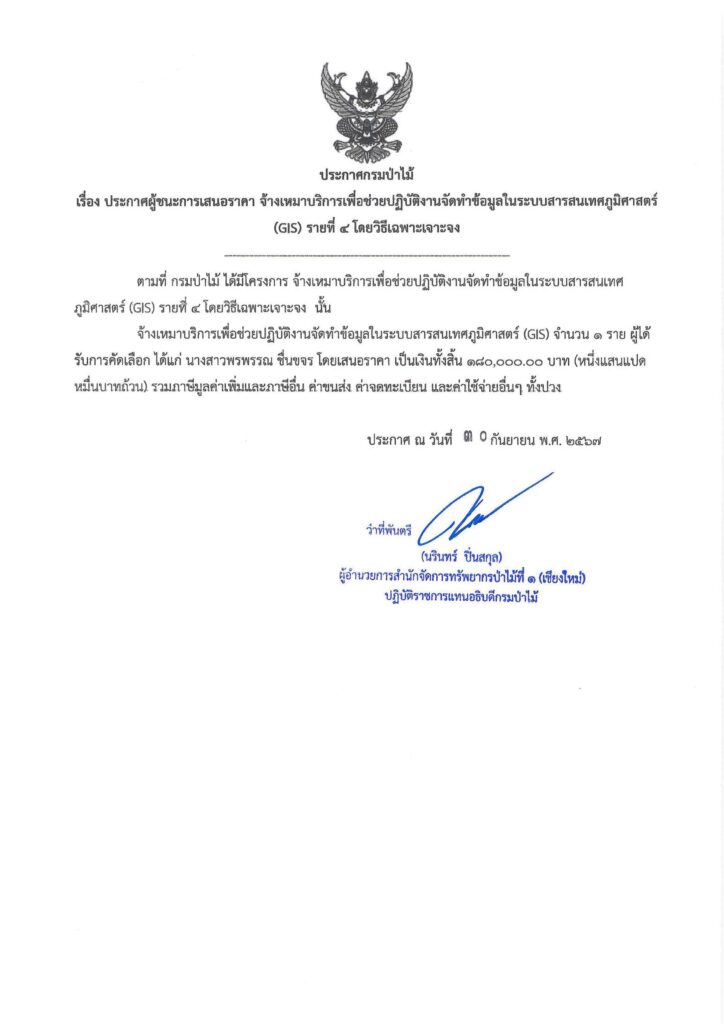 ประกาศกรมป่าไม้ เรื่อง ประกาศผู้ชนะการเสนอราคา จ้างเหมาบริการเพื่อช่วยปฏิบัติงานจัดทำข้อมูลในระบบสารสนเทศภูมิศาสตร์(GIS) รายที่ ๔ โดยวิธีเฉพาะเจาะจง30 กันยายน 2024 ใน ประกาศจัดซื้อจัดจ้าง / ประกาศผู้ชนะการเสนอราคา by adminir