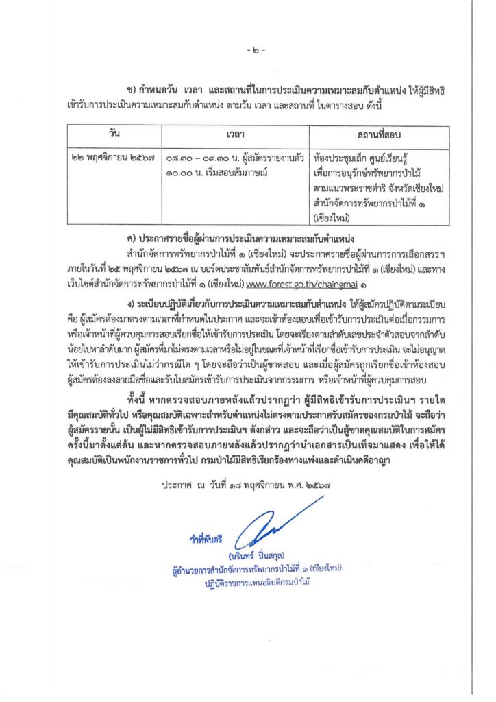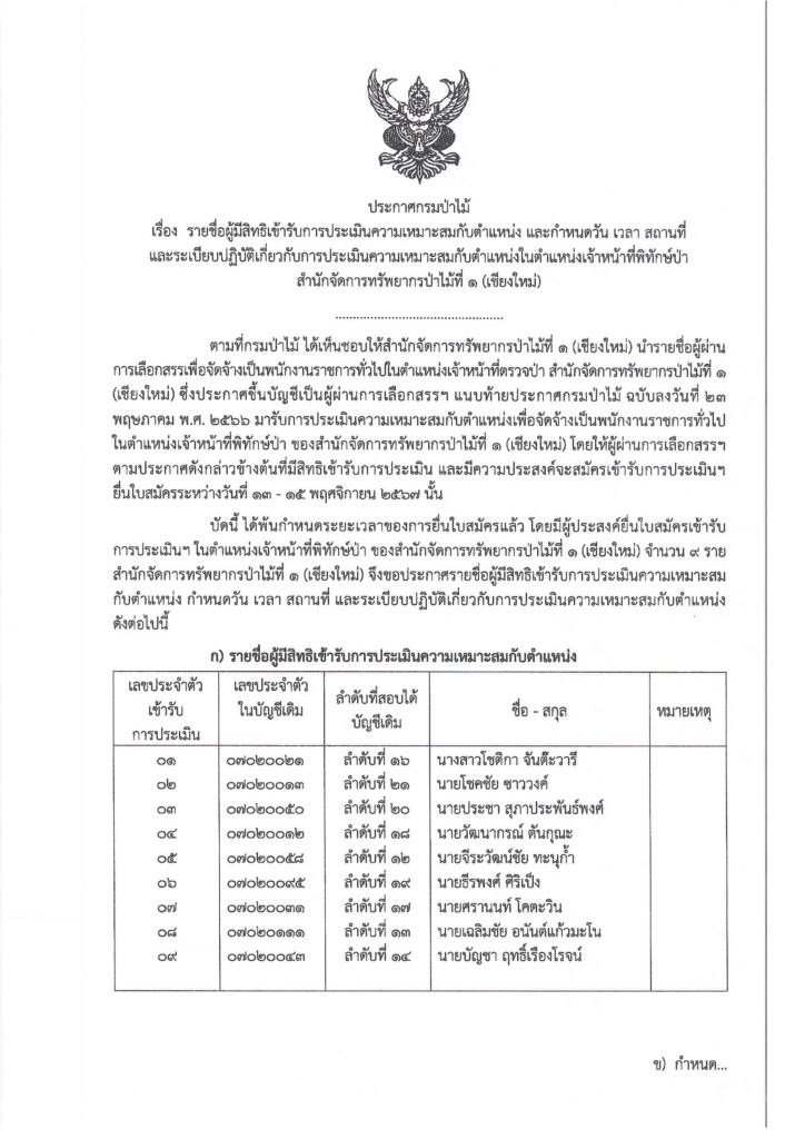 หน้าแรก » ข่าว » ข่าวกิจกรรม » ประกาศกรมป่าไม้ เรื่อง รายชื่อผู้มีสิทธิเข้ารับการประเมินความเหมาะสมกับตำแหน่ง และกำหนดวัน เวลา สถานที่และระเบียบปฏิบัติเกี่ยวกับการประเมินความเหมาะสมกับตำแหน่งในตำแหน่งเจ้าหน้าที่พิทักษ์ป่าสำนักจัดการทรัพยากรป่าไม้ที่ ๑ (เชียงใหม่)