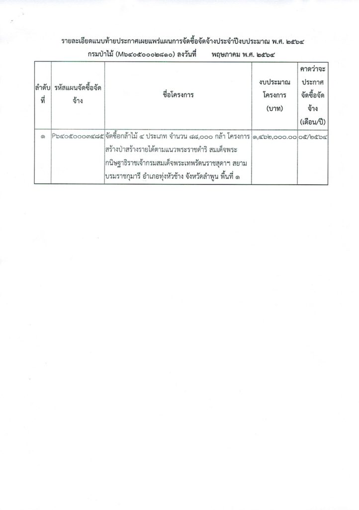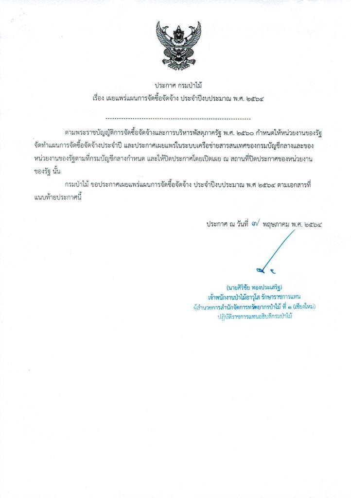 ประกาศกรมป่าไม้7 พฤษภาคม 2021 ใน ไม่มีหมวดหมู่ by adminir ประกาศกรมป่าไม้ เรื่องเผยแพร่แผนการจัดซื้อจัดจ้าง ประจำปีงบประมาณ พ.ศ. 2564