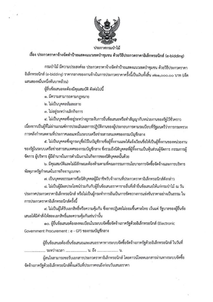 ประกาศกรมป่าไม้20 พฤษภาคม 2021 ใน ไม่มีหมวดหมู่ by adminir ประกาศกรมป่าไม้ เรื่อง ประกวดราคาจ้างจัดทำป้ายแสดงแนวเขตป่าชุมชน ด้วยวิธีประกวดราคาอิเล็กทรอนิกส์ (e-bidding)