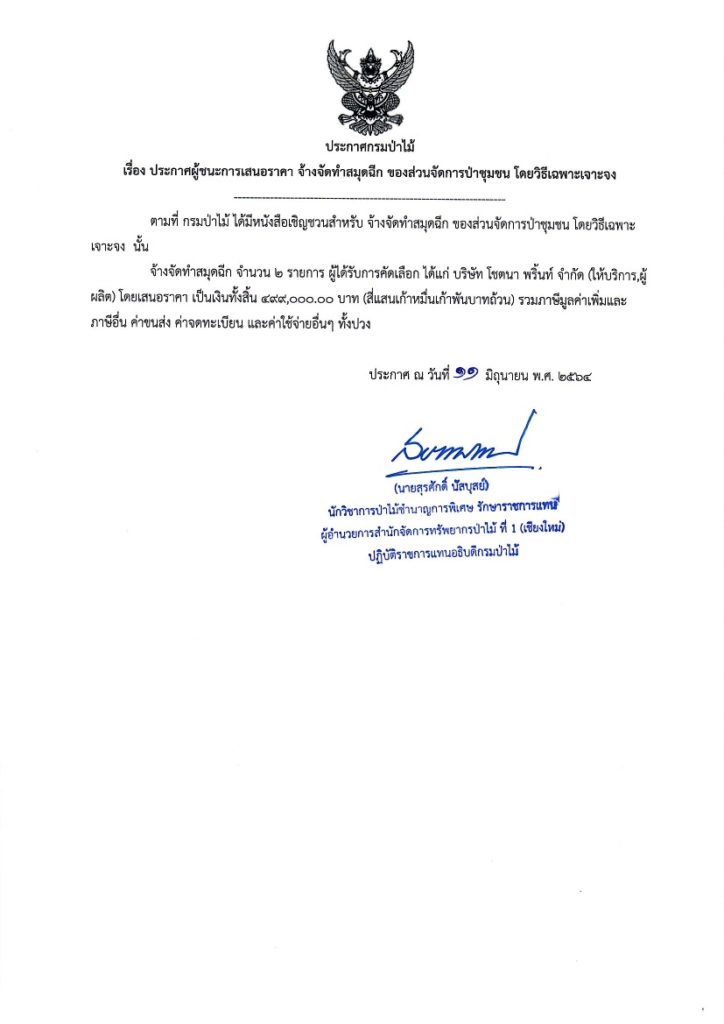 ประกาศกรมป่าไม้11 มิถุนายน 2021 ใน ไม่มีหมวดหมู่ by adminir เรื่อง ประกาศผู้ชนะการเสนอราคา จ้างจัดทำสมุดฉีก ของส่วนจัดการป่าชุมชน โดยวิธีเฉพาะเจาะจง