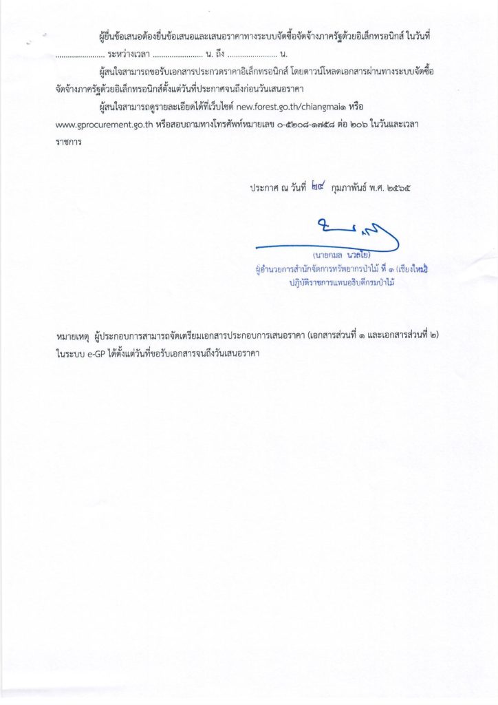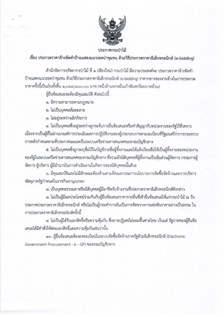 ประกาศกรมป่าไม้24 กุมภาพันธ์ 2022 ใน ไม่มีหมวดหมู่ by adminir เรื่อง ประกวดราคาจ้างจัดทำป้ายแสดงแนวเขตป่าชุมชน ด้วยวิธีประกวดราคาอิเล็กทรอนิกส์ (e-bidding)