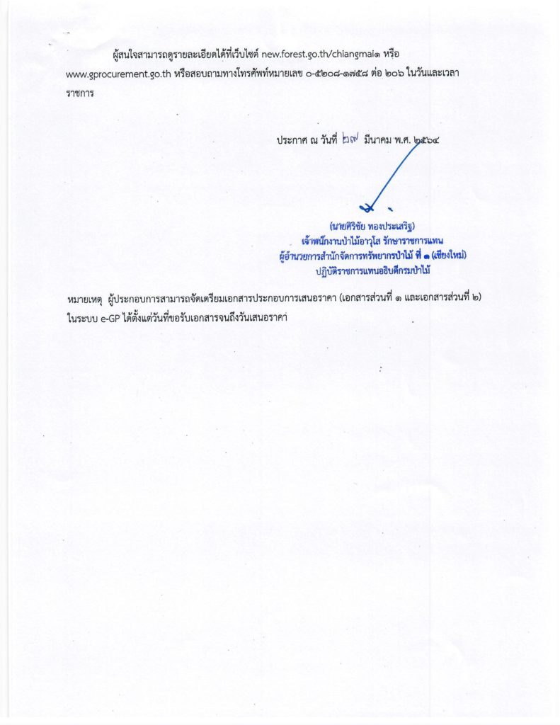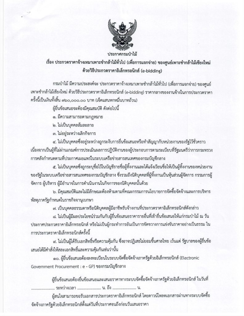 ประกาศกรมป่าไม้29 มีนาคม 2021 ใน ไม่มีหมวดหมู่ by adminir เรื่อง ประกวดราคาจ้างเหมาเพาะชำกล้าไม้ทั่วไป (เพื่อการแจกจ่าย) ของศูนย์เพาะชำกล้าไม้เชียงใหม่ ด้วยวิธีประกวดราคาอิเล็กทรอนิกส์ (e-bidding)