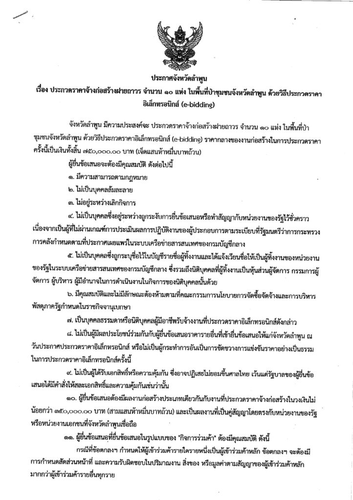ประกาศจังหวัดลำพูน เรื่อง ประกวดราคาจ้างก่อสร้างฝายถาวร จำนวน 10 แห่ง ในพื้นที่ป่าชุมชนจังหวัดลำพูน ด้วยวิธีประกวดราคาอิเล็กทรอนิกส์ (e-bidding)19 เมษายน 2021 ใน ประกาศจัดซื้อจัดจ้าง by adminir