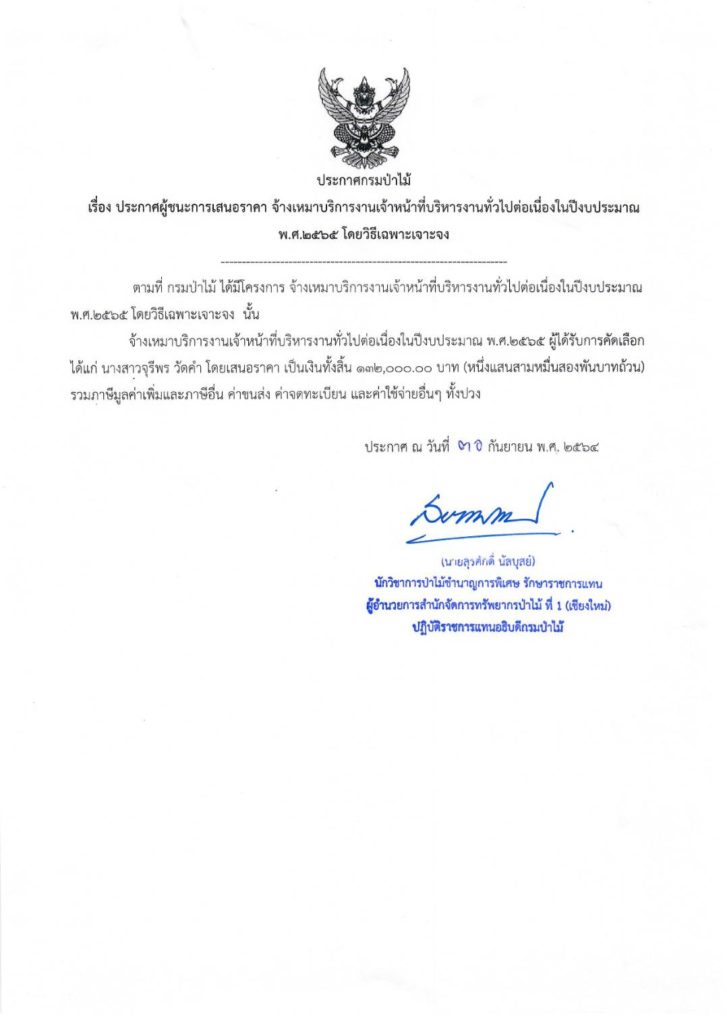 ประกาศผู้ชนะการเสนอราคา จ้างเหมาบริการงานเจ้าหน้าที่บริหารงานทั่วไปต่อเนื่องในปีงบประมาณ30 กันยายน 2021 ใน ประกาศ by adminir