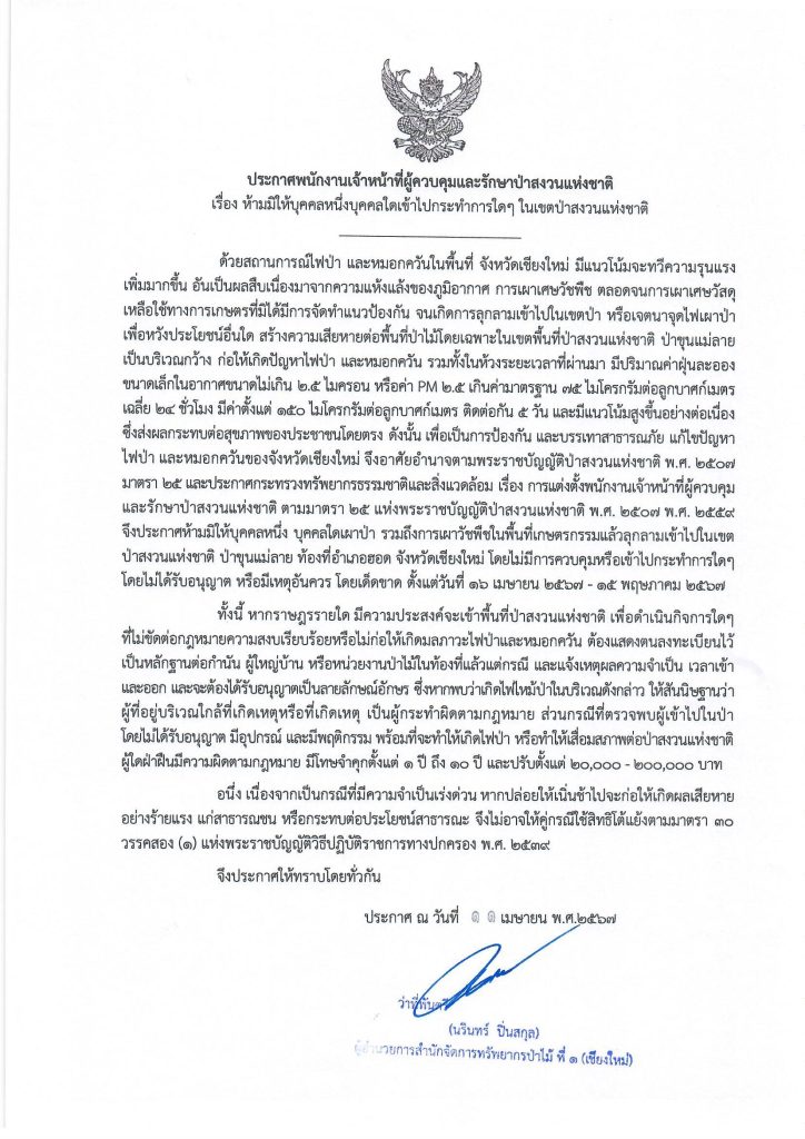 เรื่่อง ห้ามมิให้บุคคลหนึ่งบุคคลใดเข้าไปกระทำการใดๆ ในเขตป่าสงวนแห่งชาติ