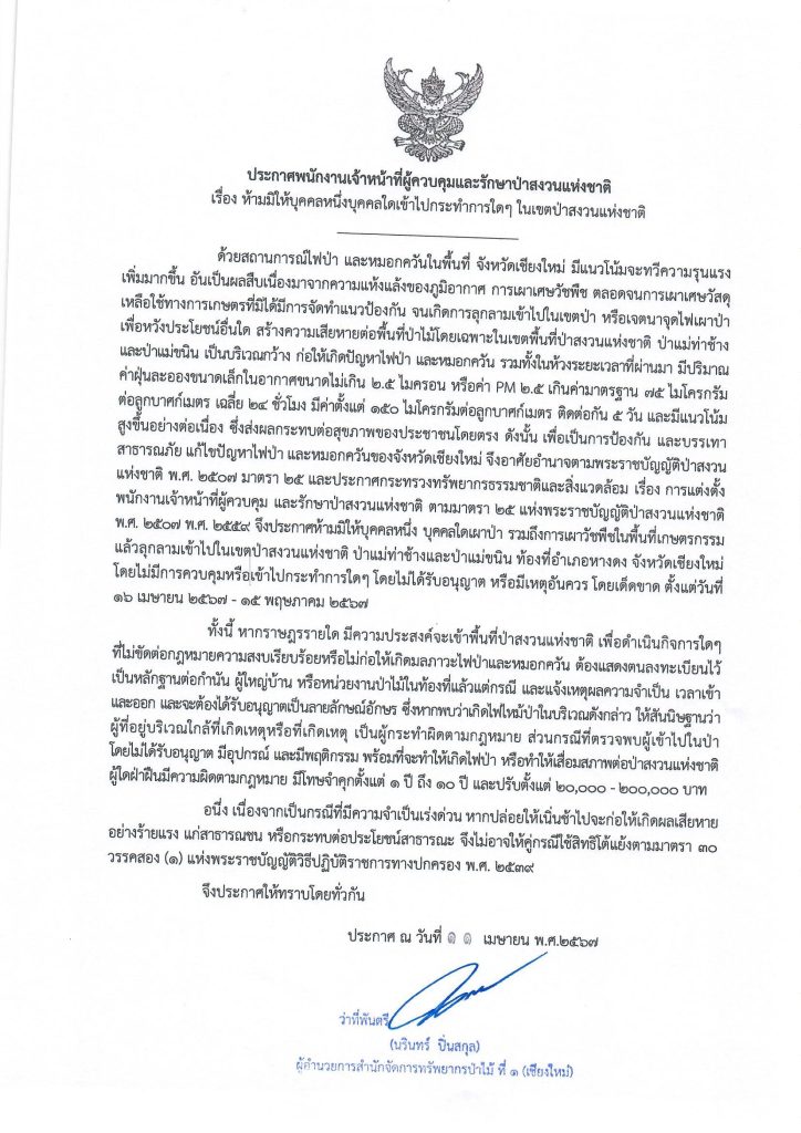 เรื่่อง ห้ามมิให้บุคคลหนึ่งบุคคลใดเข้าไปกระทำการใดๆ ในเขตป่าสงวนแห่งชาติ