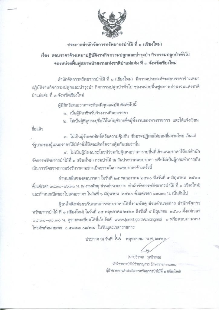 ประกาศสอบราคาจ้างเหมาปฏิบัติงานกิจกรรมปลูกและบำรุงป่า ของหน่วยฟื้นฟูสภาพป่าสงวนแห่งชาติป่าแม่แจ่มที่ 3 จ.เชียงใหม่25 พฤษภาคม 2017 ใน ไม่มีหมวดหมู่ by ADMIN