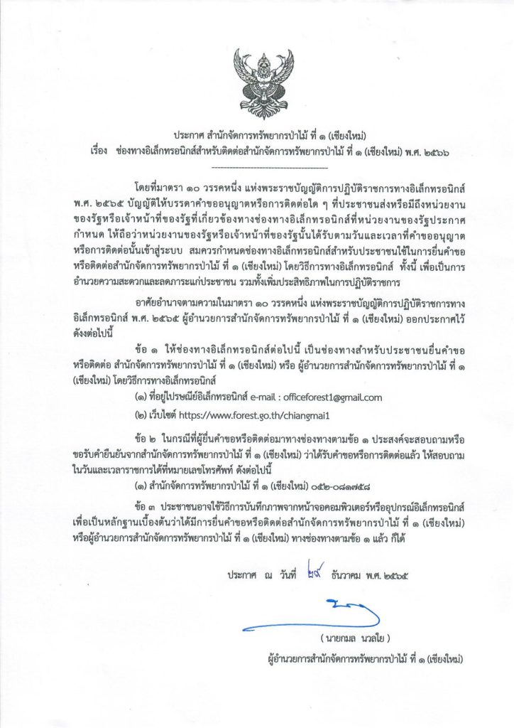 ประกาศสำนักจัดการทรัพยากรป่าไม้ ที่ 1 (เชียงใหม่)5 มกราคม 2023 ใน ประกาศ by adminir เรื่องช่องทางอิเล็กทรอนิกส์สำหรับติดต่อสำนักจัดการทรัพยากรป่าไม้ ที่ 1 (เชียงใหม่) พ.ศ.2566