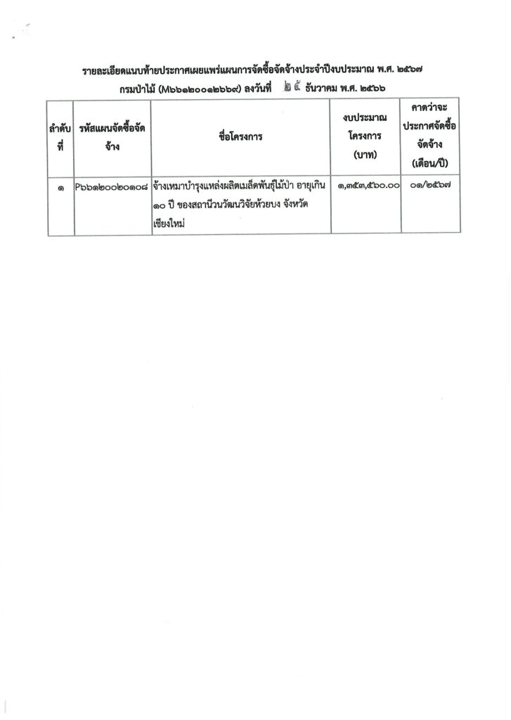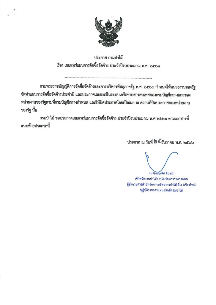 ประกาศ กรมป่าไม้ เรื่อง เผยแพร่แผนการจัดซื้อจัดจ้าง ประจำปีงบประมาณ พ.ศ. ๒๕๖๗25 ธันวาคม 2023 ใน ประกาศจัดซื้อจัดจ้าง by adminir
