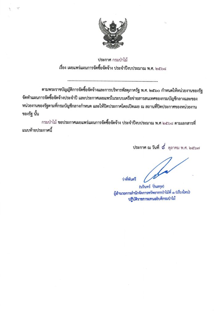 ประกาศ กรมป่าไม้ เรื่อง เผยแพร่แผนการจัดซื้อจัดจ้าง ประจำปีงบประมาณ พ.ศ. ๒๕๖๘9 ตุลาคม 2024 ใน ประกาศ / ประกาศจัดซื้อจัดจ้าง / แผนการจัดซื้อจัดจ้าง by adminir