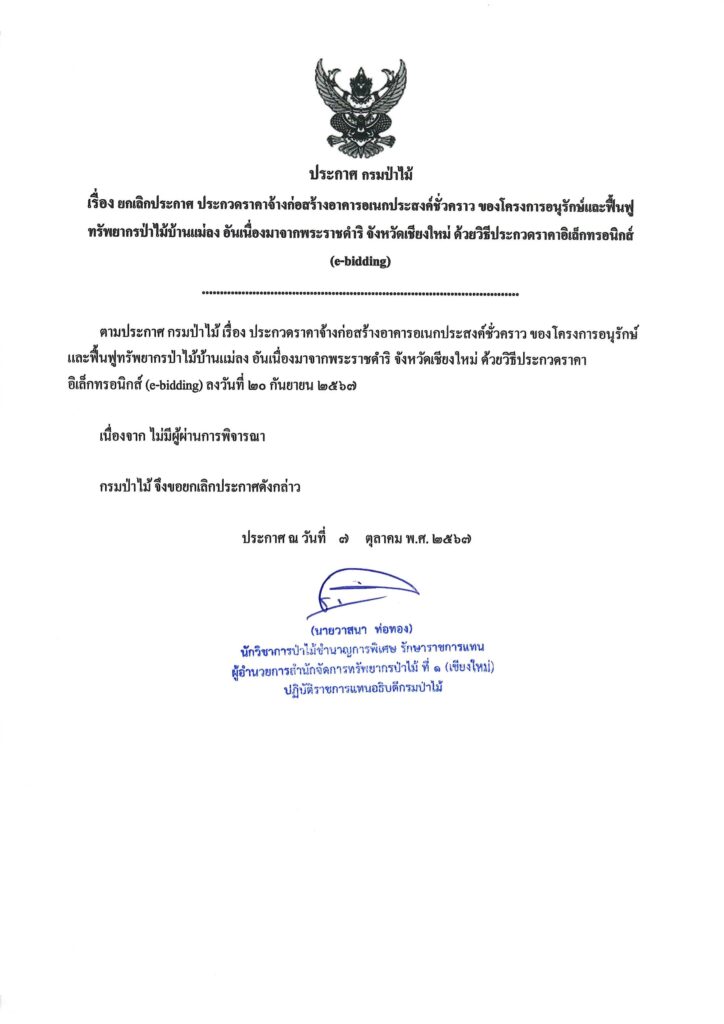 ประกาศ กรมป่าไม้ เรื่อง ยกเลิกประกาศ ประกวดราคาจ้างก่อสร้างอาคารอเนกประสงค์ชั่วคราว ของโครงการอนุรักษ์ทรัทยากรป่าไม้บ้านแม่ลง อันเนื่องมาจากพระราชดำริ จังหวัดเชียงใหม่ ด้วยวิธีประกวดราคาอิเล็กทรอนิกส์(e-bidding)10 ตุลาคม 2024 ใน ประกาศ / ประกาศจัดซื้อจัดจ้าง by adminir